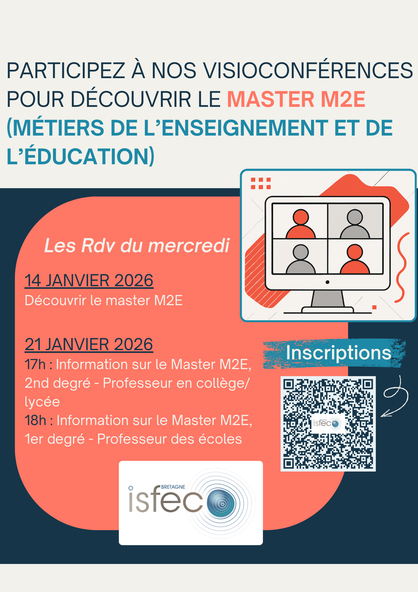 Du 14/01/2026 au 14/01/2026 distanciel 17h30-18h15 Découvrir l'ISFEC Bretagne et avoir des informations générales sur le Master MEEF s'inscrire Retourner à l'agenda